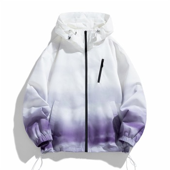 Degrade kapüşonlu ceket erkekler ve kadınlar için ısmarlama Trendy japon ceket hırka tasarım tulum ceket